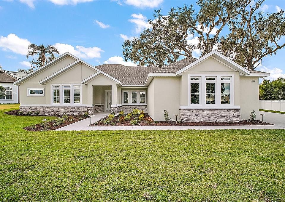 Located in gated community, Majestic Oaks, with 4 Bedroom, 3 full Bathrooms, office space, and open concept living. Engineered hardwood flooring throughout and upgraded kitchen with cabinets to ceiling, quartz countertops, tiled backsplash and farmhouse sink. Master bathroom has oversized shower and freestanding bathtub. Oversized front and rear porches with mature trees and professional landscaping with landscape lighting. Full appliance package including washer and dryer. Tankless gas water heater and gas range. Majestic Oaks is located on Lake Griffin which is a part of the Harris Chain of lakes with easy access to the Villages, Tavares, Mount Dora and more!
