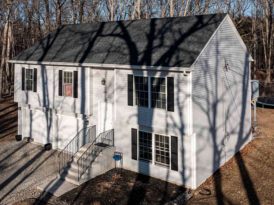 This stunning 2023-built raised ranch in Montville features 4 spacious bedrooms and 3 full bathrooms within a thoughtfully designed layout. The primary bedroom, located in the beautifully finished basement, offers ample space-crafted as the main bedroom but versatile enough to serve as a cozy playroom or functional office if you choose the bright upstairs bedroom with its own full bath as your primary instead. Soaring vaulted ceilings throughout the home enhance the open, airy feel. Perfectly positioned next to Montville High School, this charming home ensures effortless access to vibrant town amenities and exciting community events. It sits on a generous 3.87-acre lot, set back for privacy, with endless potential to clear for additional usable land or construct a stylish accessory dwelling unit (subject to local zoning). The expansive garage provides abundant storage space, ideal for keeping everything organized. Built with sleek modern finishes and meticulously maintained since its construction, this inviting raised ranch blends contemporary comfort with adaptable space in a serene yet convenient Montville location.