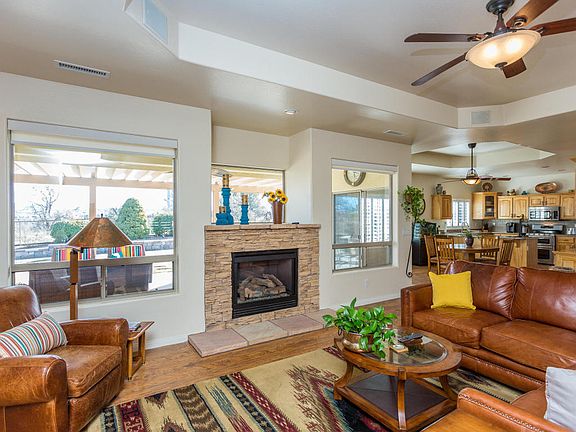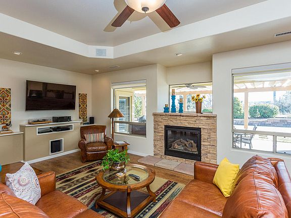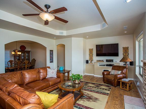 Absolutely immaculate & highly appointed home in Pinon Oaks offers open & spacious great room concept with abundant natural light, fabulous (usable) backyard, park-like landscaping, panoramic views & room for a 40' RV behind the gate! Features include wood flooring or tile in all traffic areas, plantation shutters throughout, informal eat-in kitchen w/built in hutch plus formal dining (or office) fireplace in great room, coffered ceilings & custom architectural touches throughout! Kitchen is highly upgraded with Quartz countertops & custom tile backsplash, clear maple cabinetry w/wine rack and deco glass fronts, stainless KitchenAid & Maytag appliance package, breakfast bar & two pantries! Master suite offers access to rear patio, coffered ceiling, raised height dual vanity, CONTINUED...