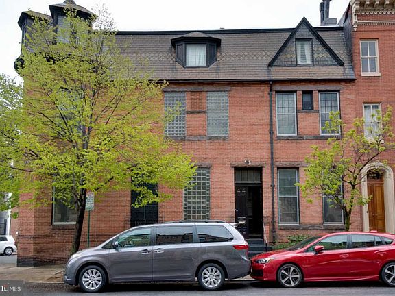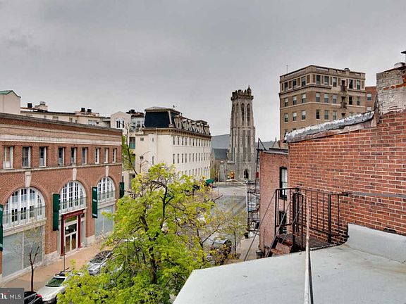 A unique Baltimore gem. Sited on a triangular lot, the home has few square rooms.The lovely entrance hall features a curving staircase & decorative fireplace.The large formal rooms have hardwood floors, built-in cabinets & bookcases, exposed brick, 10 ft+ceilings and many fireplaces.Curiosity will lead you up the circular stair to the 3rd floor turret and additional bedrooms.Mt VernonFees.