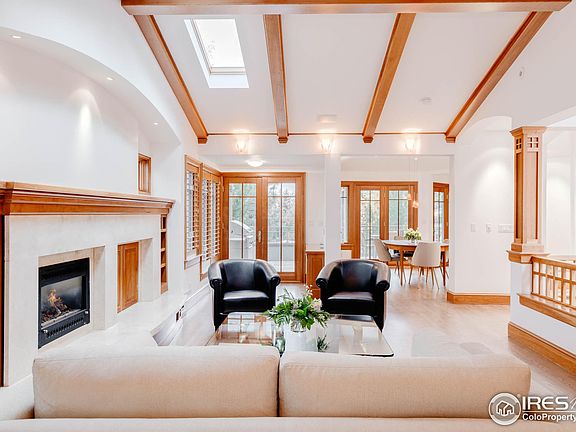 Elevated craftsman inspiration, a spectacular indoor-outdoor layout, elevator access throughout, and an amazing location define this four-bedroom, four bathroom Boulder, Colorado, showplace just blocks from Chautauqua Park. Throughout this superb 3,896-square-foot home, you'll find remarkable millwork, tall ceilings, custom lighting and gorgeous hardwood floors. In nearly every room, doors open directly to stunning patios & decks. The skylit upper level boasts spacious living & dining rooms, gourmet kitchen & owner's suite w/ spa bath. Below, you'll find another suite, 2 more bedrooms, large hall bath & laundry. A long, heated driveway, heated/snowmelt stairs, & two-car attached garage provide plenty of parking, while towering trees add to this home's exceptional peace & privacy. This home is surrounded by coveted Chautauqua attractions, including Chautauqua Park & dozens of world-class trails, w/ Downtown Boulder & Pearl Street just a mile away.