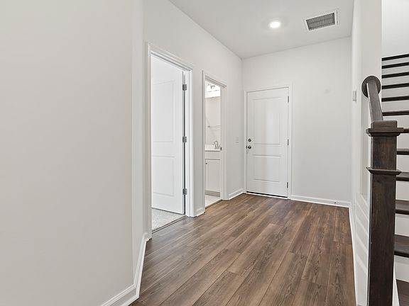 Under construction, estimated for Aug/Sept completion. This townhome will be beautifully upgraded and faces a community green space, just steps from the neighborhood amenities. The first floor includes a 20x24, rear entry, two car garage. Inside, you'll find a first floor guest room and full bathroom with step-in shower. Beautiful wood treads lead to the second floor, where you'll find your kitchen, family and dining rooms, as well as balcony access and a half bath. This particular home features an electric fireplace with shiplap and stained beam mantle detail. The kitchen is light and bright with white shaker cabinets and quartz countertops. Light colored LVP flooring. This home finishes off with the third floor, where you will find three more bedrooms and two bathroom, as well aslaundry. Spacious Owner's Suite has been extended and private bathroom includes a tiled shower and tub!