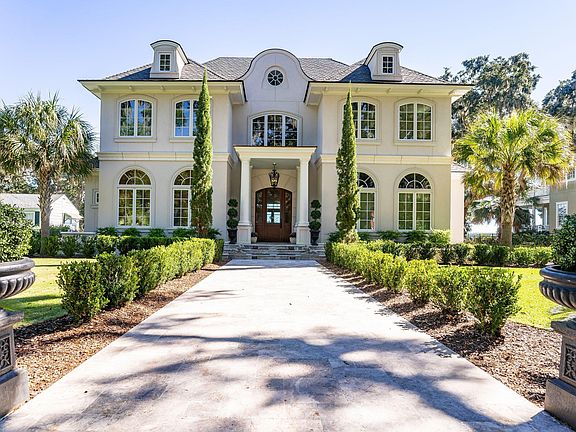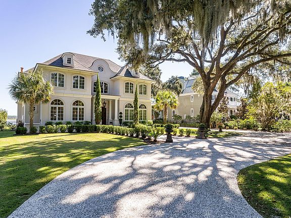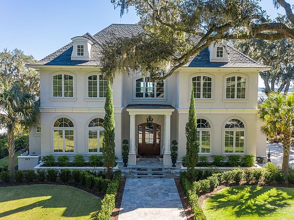 Located on the high bluff overlooking the waterway and the lights of downtown Beaufort, this stunning deepwater home was built to the highest standard in 2016. Comprised of approximately 5033 square feet, the home offers five bedrooms, three full and two half baths. Constructed of cast stone and hard coat stucco, the home offers Anderson Impact windows and doors. Exceptional craftsmanship is exhibited throughout the property. Some of the many recent improvements by the current owners include the addition of a beautiful pool overlooking the water, a new boat lift, cat walk and dock electrical package extensive landscaping and hardscape and a perimeter wall with electronic gates. The front door opens to a grand foyer with a soaring ceiling, Botticino marble floors and a circular staircase. The marble floor leads back to the kitchen, dining, family and living rooms.