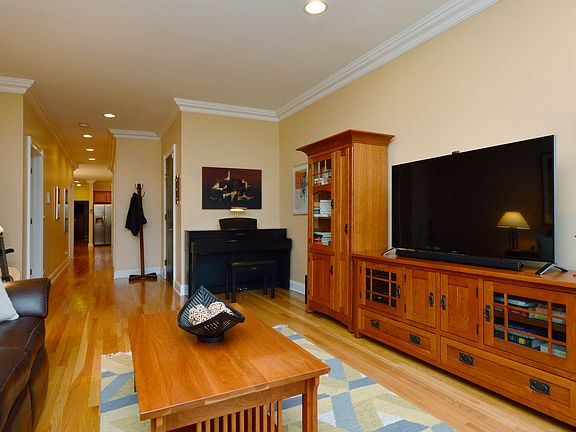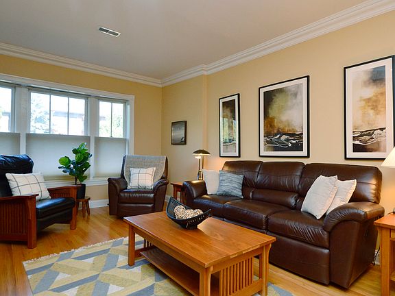 Building and unit was gut rehabbed in 2007 w/ new windows, floors, wiring, plumbing, etc. Owner chose upgrades and tweaked the floorplan to allow for two master bedrooms and baths. Additional upgrades of trimwork, flooring, and cabinetry set this space apart. The spacious & flowing kit/dining room area has natural finish cherry cabs, SS appliances, wine cooler and breakfast bar. All rooms are good sized, and unit boasts great closet space. In-unit laundry, central heat and AC. Pets are welcome! Exercise room, common yard area and a good sized storage locker too. Parking space included. Close to restaurants, Metra, purple line, lake and more! Don't miss out on this fantastic unit in a well run building that is close to all.