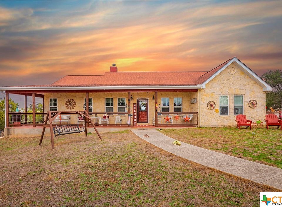 Welcome home to this beautiful 3 bedroom, 2 bath home in the gated community of the Legends at Rancho Del Lago minutes from CANYON LAKE. This is where you can relax and enjoy the stunning sunset views from the front porch. Step inside and you'll find a breathtaking natural stone floor-to-ceiling fireplace with custom built cabinets on both sides. Prepare meals in the spacious kitchen featuring custom built cabinets, an island, new granite countertops, and subway tile backsplash. The luxurious master bath includes a custom built vanity with granite countertop and cast iron claw foot slipper tub for ultimate relaxation. You'll also find an office complete with built-in bookcases for all of your work needs. Beautiful park-like garden in front that offers tranquil moments thanks to its natural stone water fountain and walking path illuminated by 12 volt lighting including direct illumination on the fountain and flag pole. Enjoy plenty of outdoor space in the large fenced backyard or take some time for yourself in your own private hot tub! You'll also appreciate having two storage sheds (8x12 & 8x16) as well as an enclosed vegetable garden complete with deer proof fencing, drip irrigation system, 50 gallon rain catchment barrels - everything you need to grow fresh produce right at home!