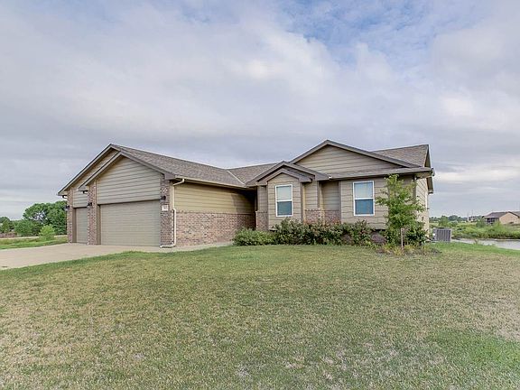 This gorgeous home boasts all the advantages of modern living tucked away on a safe, quiet cul-de-sac lot. The open floor plan creates an airy, well-lit, cheerful atmosphere. The main level includes a spacious master bedroom and bath, a second full bath, and kitchen possessing generous square footage. Also on the main level is a dining area with a door that opens onto a backyard deck, with a waterfront-lake view, which is perfect for outdoor meals and entertaining. On the lower level of the home there is a finished basement, with one bedroom and a full bathroom. All of this on just under an acre lot in Maize schools.