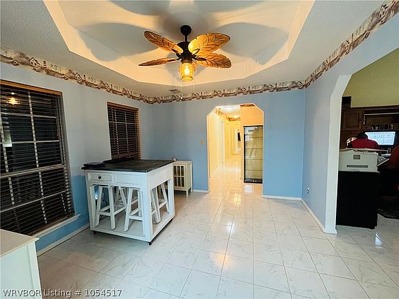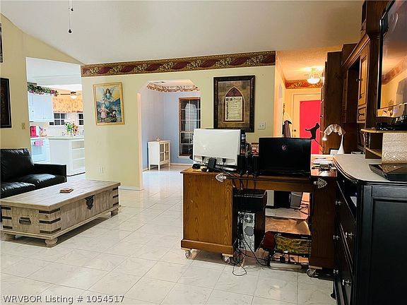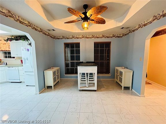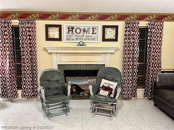 Charming country home displaying high vaulted ceiling in family room with cozy electric fireplace. Dining area with tray ceiling. Eat-in kitchen area with bar for your convenience. Large master bedroom with walk in closet and a door leading out to the patio. The wrap around porch offers plenty of under roof space for outdoor entertaining or expansion. Tile flooring throughout the home. Huge 2 car detached garage. All of this privately sits on 3/4 acre. Make this your family home for a great price!