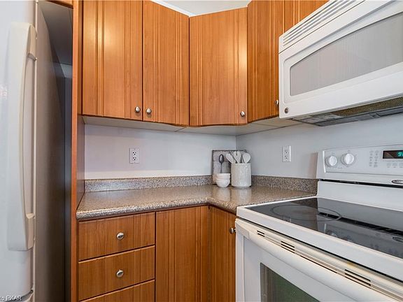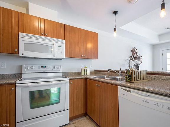 Simple, care free, condo living in the desirable community of New Amherst. Victorian style, open concept, 2 Bdrm, 1 Full bath, 1 half Bath, single detached garage with storage locker. Bright open concept combined living/dining with w/o to covered porch. U shape kitchen with appliances & breakfast bar for seating. Spacious Master w/ 4 piece ensuite, laundry in unit.