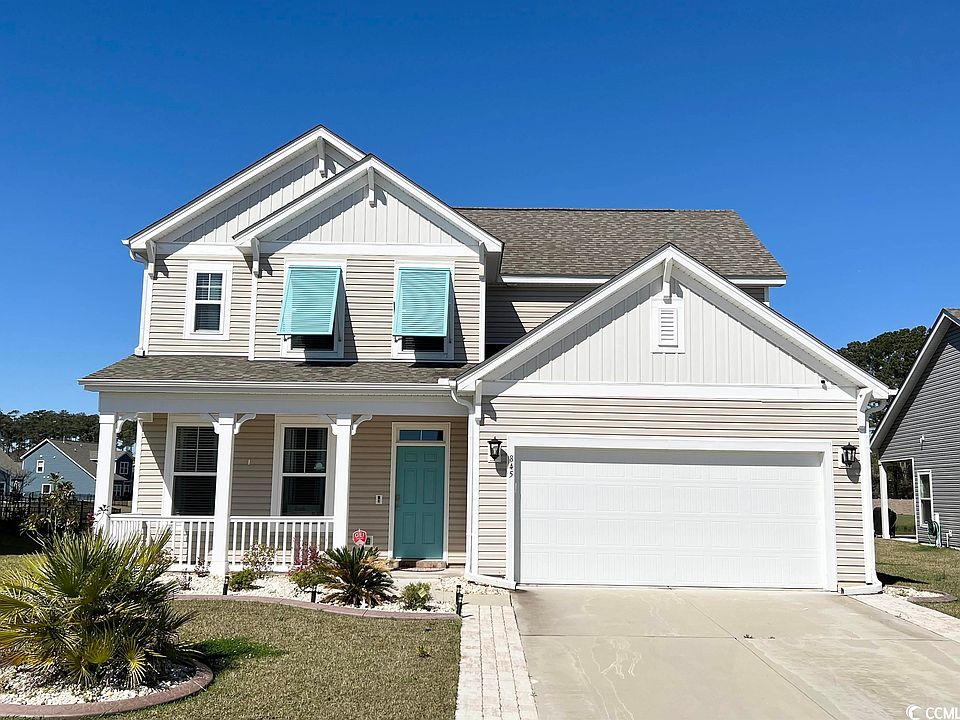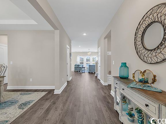 Welcome to this quiet neighborhood located in the Surfside Plantation Community. This stunning 3 Bedroom, 2.5 Bathroom pond view home is a walk to the pool, and minutes from the beach, golf, shopping, and restaurants. The home, which was built in 2020, features a beautiful open floor plan. The kitchen is equipped with stainless steel appliances, upgraded cabinets and an extended quartz kitchen island. Next to the kitchen is a breakfast area. There is a formal dining room that has a tray ceiling. Relax in the spacious great room that has a great pond view. The large owner's bedroom is located on the first floor. It also has a great view of the pond. The owner's bathroom includes a large walk-in closet, a tiled walk-in shower, and a large vanity with a double sink. A powder room is also located on the first floor. The second floor features a comfortable loft area / family room, two additional bedrooms, and a full bathroom. There is plenty of closet space throughout the home. Plenty of room for your vehicles and storage in the 2-car garage, attic space above the garage, and an additional storage space on the second floor. A tiled floor screened in porch and a large beautiful paver patio is accessed via a sliding glass door. The view of the sunsets on the pond from the porch and patio are gorgeous. While out in the back, hook up your outdoor grill to the outside gas line. All of the beautiful ceiling fans and light fixtures come with the house!!! The outside of the home is beautifully landscaped with stone flower beds, curbing, palm trees, and an irrigation system. THERE IS SO MUCH MORE TO SEE!!!! A Must see!!!! Schedule a showing so you do not miss an opportunity to purchase this gorgeous home in this great neighborhood. OPEN HOUSE SATURDAY, MARCH 18TH 11AM - 3PM AND SUNDAY, MARCH 19TH 11AM - 2PM