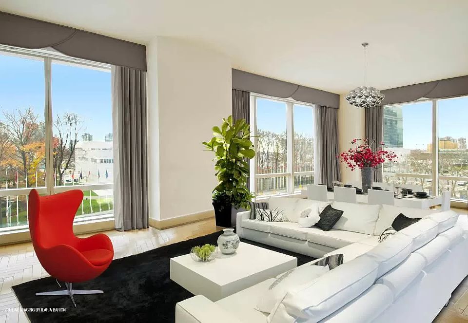 JUST REDUCED Great Investment Residence 6D is a 2 bedroom with 2.5 baths located on the S/E corner of 845 United Nations Plaza with direct views of the UN Gardens and River. This residence features a gracious 30-foot corner living/dining room, surrounded by parks and trees on both sides. The residence has a large windowed eat-in-kitchen, a guest powder room, a primary bedroom with a luxurious marble primary bath, and a split second bedroom with en suite marble bath. The apartment has 10-foot ceilings, maple herringbone floors and floor-ceiling tinted windows. Mechanic features include GE monogram kitchen appliances, in-unit washer/dryer and multi room-controlled air conditioning/heat. 845 United Nations Plaza is a luxurious condominium located in Midtown East. The condominium employs 24-hour doormen, a full-time concierge, a building manager and a wonderful staff. Building amenities include an on-site fitness center, a spa, an indoor pool and parking garage. Valet parking is available from the building's private driveway. Pets are allowed. The condominium also offers, a children's playroom, wine storage, private storage rooms/closets, bike storage, newly landscaped private park, a new dog park and much more. The up-scale UN Plaza Grill located on the lobby level of the building.