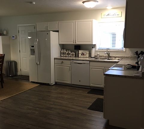 - KITCHEN: ELECTRIC RANGE, DISHWASHER, GARBAGE DISPOSAL, REFRIGERATOR, MICROWAVE, RANGE HOOD, LAMINATE