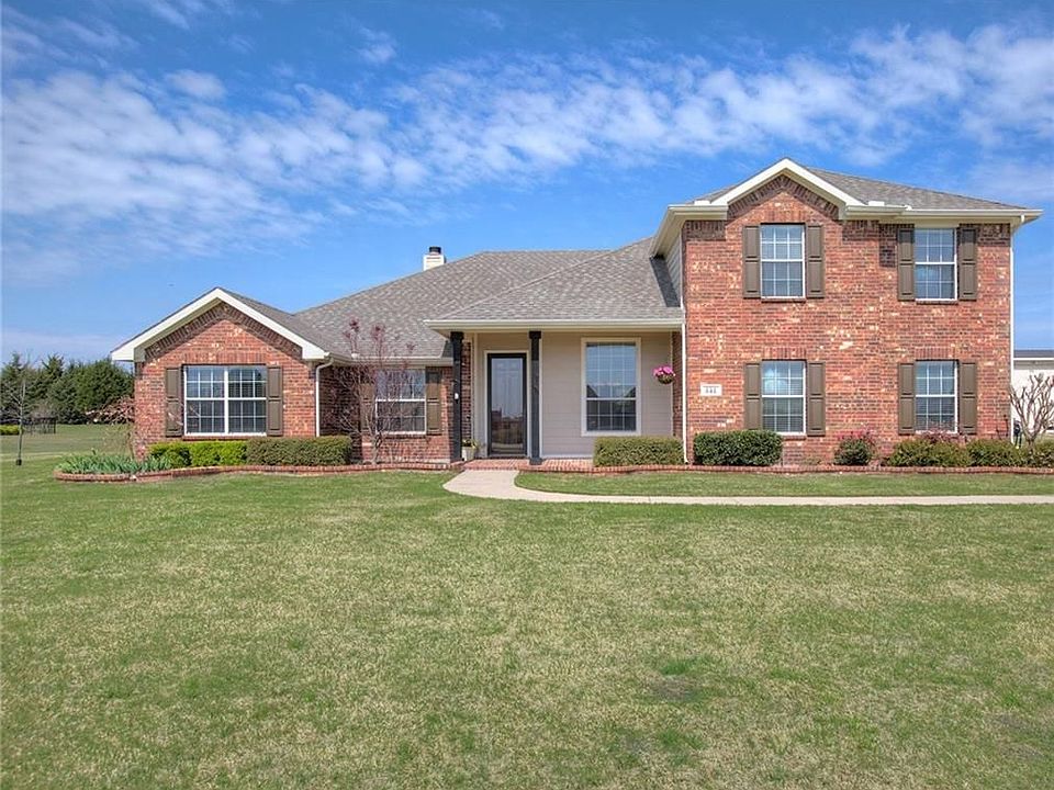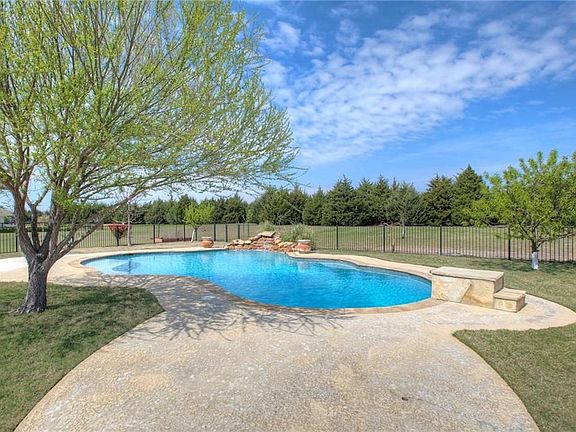 Incredible, immaculately maintained, 1 1/2 story, brick home (with all downstairs bedrooms) is only 28 miles from Dallas and features sparkling pool, outbuilding & and is situated on private 1.5 plus acre tree lined lot. Gorgeous curb appeal welcomes you to this lovingly maintained home. Lovely entry opens onto large dining area that is perfect for entertaining. Large home office features tiered ceiling and French doors. Open floor plan features spacious family room overlooking kitchen and breakfast area. Family room features gorgeous fireplace with custom wood mantle and opens onto covered patio overlooking beautiful pool. Large kitchen features tons of wood cabinets, granite counter tops, large breakfast bar, built in double ovens, cooktop, microwave and dishwasher. Spacious breakfast area opens onto kitchen and family room and is complete with lovely chandelier. Private master suite features large master bedroom opening onto master bath. Master bath features his and her vanities, garden tub and separate shower. Large utility room is complete with spacious pantry. Spacious guest room is complete with full bath. Two large auxiliary bedrooms feature roomy closets. Huge media/game room is complete with wet refreshment bar, custom built ins and half bath. Large covered patio overlooks gorgeous pool and tree lined, private 1.55 acre lot. 240 sq ft out building with concrete flooring and overhead door. Enjoy town and country living at its best! Dont miss this one!