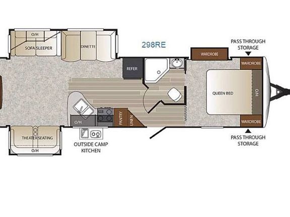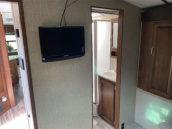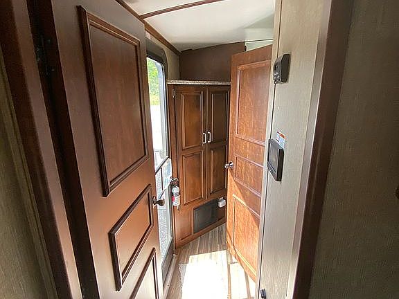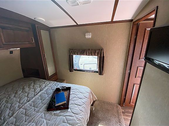 LOT 120 Sundown Resort with 2016 Outback 35 foot travel trailer model 298RE with front and rear AC, electric fireplace, two tvs, 3 slide outs and queen size bed.