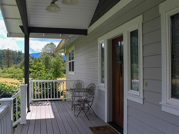 A country lane, just a whisper from Grants Pass, winds through beautiful rural land to reveal this gorgeous Applegate River Front sanctuary! Reminiscent of the gracious and stately, yet oh-so-comfortable estates of the Southern US, this home displays an extreme amount of planning and attention to detail. Come and relax on the screened porch that enjoys views of the sprawling lawns, mature trees, and the river beyond, or entertain in the amazingly well designed kitchen with granite counters, Dacor 6 burner gas range with oversized self-cleaning convection oven, Dacor wall mounted convection ovens, and brand new Whirlpool double refrigerator/freezer that will satisfy the most discriminating chef! With a delightful (and tasteful) mixture of vintage features and newer conveniences, this home and property beautifully marry the Southern Farmhouse'' with the Upscale Newer Home''! Custom distressed cabinetry throughout, incredible wood flooring, vintage interior doors, antique beveled glass in living room cabinets, an antique (survived the 1906 SF earthquake) claw foot tub, and a dumb waiter'' lift to easily transport goods from the first floor garages to the main living floor. The master ensuite, additional bedroom/office, and another bathroom are located on the main floor along with a remarkable utility/craft room that features abundant storage, a work table and a moveable craft table on wheels! Upstairs discover a reading room'', family room, beautiful bath, and a third bedroom with deck overlooking the court basketball and the awesome back yard. The basement'' area has plentiful space, enough for 4-5 car tandem parking PLUS there is the detached garage/barn with parking for 2 more vehicles! Additionally, the downstairs kitchenette'' area accesses the covered patio via French doors, facilitating a terrific indoor/outdoor space that is wired for outdoor TV and lends itself to alfresco entertaining. Furthermore, find a delightful outdoor shower with tile surround and hot/cold water! The surrounding land is stunning, with fruit trees, mature garden in raised beds, sprinkler system for lawns and drip system, and 300 ft. of low bank Applegate River! Come and see this heart pounding home and property, all located close to town yet private and unique...you will be amazed!