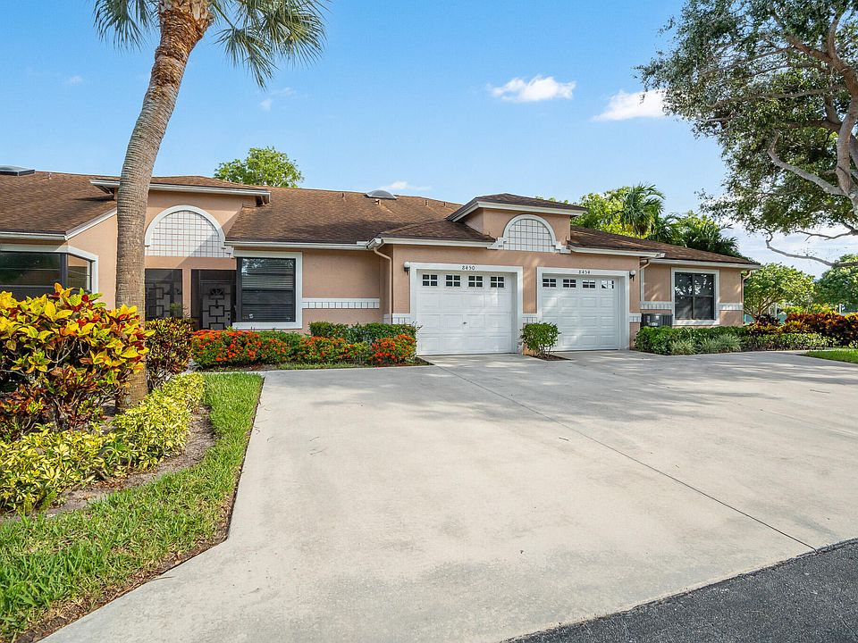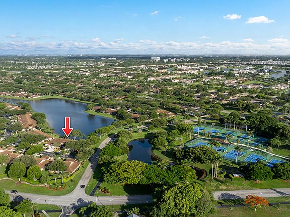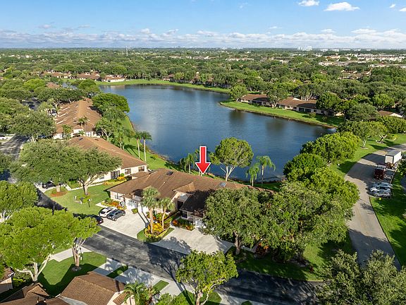 Waterfront villa in Whisper Walk of Boca Raton. Long lake views from the villas entry through the living area and primary bedroom. This 2 bedroom, 2 bathroom, 1 car garage villa has a split floor plan and great entertaining layout. Dinning room connected to the living room, and open kitchen which also offers a breakfast area. Bright and inviting den with sliding glass doors overlooking the lake. Spacious master suite with walk in closet, walk in shower and separate soaking tub. Laundry room with sink and room for extra storage off the kitchen. Property can be offered furnished. New garage door motor. AC 2018. HOA maintains the roof & exterior as well as all common areas. This unit is close walking distance to all of Parkshore's amenities including; Pool, jacuzzi, pickleball, tennis, shuffleboard, handball, a clubhouse with fitness, sauna, card rooms and a library. Gated community and wonderful active lifestyle.
