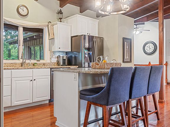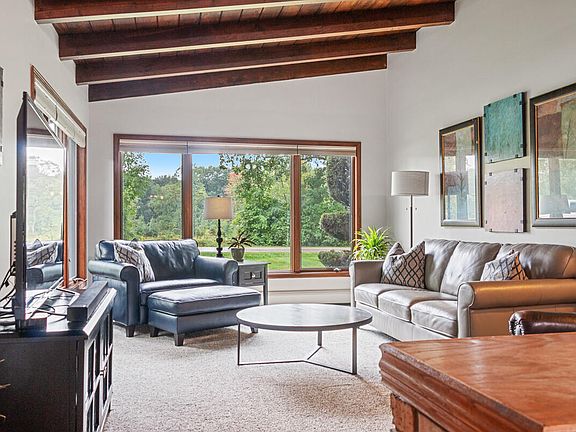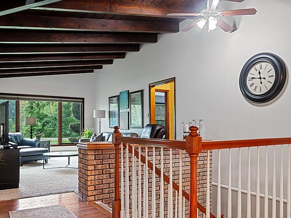 Welcome Home To This Beautiful Mid-Century Modern Ranch Style Home Surrounded By 2+ Acres Of Lovely Rolling Property! Featuring cathedral exposed beam ceilings, remodeled kitchen (major appliances to remain) with island, large dining area with fireplace and sliding glass door to upper deck and a wonderful front facing living room. Remainder of main level has three good size bedrooms and one-and-a-half bathrooms. Lower walkout level has a fourth bedroom, another full bathroom and a large family room with fireplace and patio/pool access through glass doors. In-ground pool with large seating area. Gorgeous rear yard features both open areas and large mature trees and deer often visit. Side yard with basketball court. Home shows pride of ownership throughout! Schedule to see this one today!