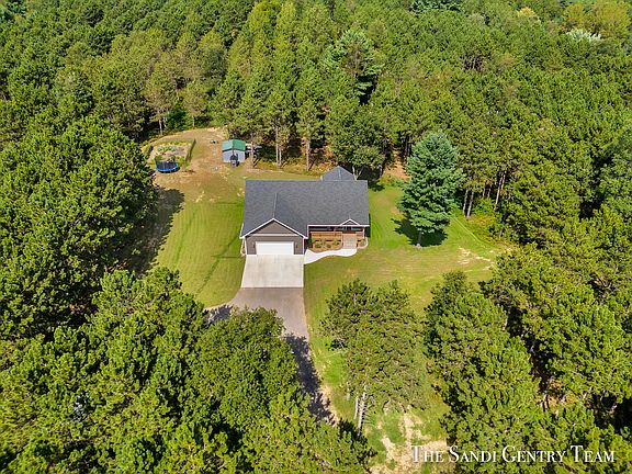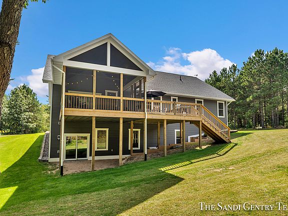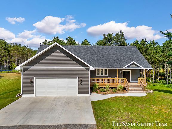 Discover the allure of picturesque Benona Township, where charm meets stunning scenery. Nestled on 8 serene acres surrounded by picturesque pine trees, and wildlife This immaculate ranch home, built in 2022, effortlessly blends modern luxury with natural beauty. Featuring 3 bedrooms and 3 full baths, the open-concept design is perfect for easy entertaining. The gourmet kitchen showcases sleek stainless-steel appliances, a spacious island with seating, and a large pantry for abundant storage. The main-floor primary suite offers a double sink vanity, enhancing comfort and convenience. The main level is accentuated by 9' ceilings, while the lower level impresses with 10' ceilings, offering 2 spacious bedrooms, full bathrooms, and a generous family area. The living and dining room flows effortlessly into a stunning screened-in porch, showcasing views of a sprawling yard with a children's play fort, a garden, and a cozy deck entertaining area. And if you listen closely, you can hear the soothing sounds of waves from Lake Michigan. Enjoy year-round comfort with premium insulation, energy-efficient mini-split systems, and an outdoor wood stove complete with log storage, providing in-floor heating. Equipped with high-speed internet and underground sprinklers, this home balances beauty and practicality. Located just minutes from the public beach at Benona Township Park on Lake Michigan, and within easy reach of Benona Shores and Oceana Golf Courses, this property provides an ideal blend of serene retreat living and convenient accessibility.