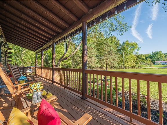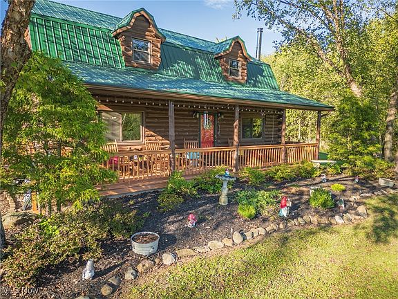 This Beautiful Property has a pond, Firepit and Woods that surround this Log Home with a 2+ car garage that looks like a barn and has a loft. The home has hard wood floors on the whole first floor. Get Cozy and Comfy in the Living Room with the wood burning stove, that uses outside air to keep you warm on those chilly nights. The eat-in kitchen has a snack bar and all the appliances are included. The kitchen is open to the dining area for your convenience. There's a half bath in the hall between the living room and the kitchen. The stairs to the second floor are double wide. The upstairs has 3 nicely sized bedrooms that are all carpeted. The full bath has a tub with a shower. The basement is full with poured concrete walls and is awaiting your finishing touches! There's a Brand New Metal Roof, a tankless hot water heater, 200 AMP electric service and Newer Heat Pump. The Barn/Garage is insulated and has a wonderful workbench at the back of the first floor. There is 100 AMP electric just for the garage that has a garage door opener. The Uptairs of the Barn can be your very own Man Cave or Hang Out Area! Are you Ready to Make this Home Yours? Home Warranty is included with your purchase as well! Schedule your private showing today!!