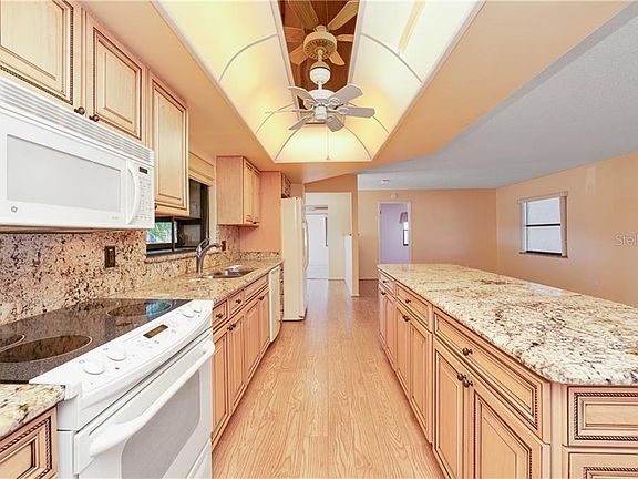 Very well maintained 3 bedroom 2 bathroom corner lot pool home with conservation views in the neighborhood of Peppertree. The renovated kitchen has granite countertops with granite backsplash, custom cabinets complete with an island. This open floor plan home is a true split plan. The master bedroom has a walk in closet, floor to ceiling tiled walk in shower, along with pool deck access from exterior door off master bathroom. On opposite side of home are two bedrooms and a full bathroom. Glass sliders off main living space open to large covered patio area with a fully screened in propane heated pool and spa. The backyard is fully fenced in (2019) with conservation views. Beautiful laminate wood flooring throughout. Other features of this home are new carpet (2020), AC (2013), appliances and window treatments. This home has wonderful curb appeal with a perfectly maintained lawn and full two car garage. Ask your agent for the upgrade sheet and make an appointment to see this home today!