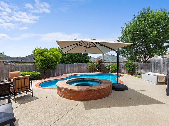 This beautiful home is a dream! The backyard is perfect for Texas summers with beautiful landscaping and your own private pool and spa. The detached 3 car garage with covered walkway has tons of storage space for you and has a gated driveway! The kitchen is gorgeous and includes granite counters, dark stained oak cabinets, an island with a cooktop, and plenty of storage space. The master suite is a great retreat with a sitting area, bay window, wood floors, raised ceilings, separate dual vanities, huge garden tub, and separate shower. The HVAC unit is only a year old and the pool and spa have new heaters. Great location in sought after Keller ISD, close to shopping, and easy access to I35 and Hwy 287.