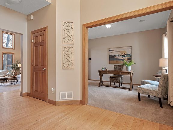 This quality built home offers main level living & is just waiting for a few touches of TLC to make it a truly standout home. Dramatic 2 story great room boasts a floor to ceiling stone fireplace & a wall of windows. Flex room off the entryway is great for an office or a formal dining area. The large kitchen will be your favorite gathering space with its center island, walk-in pantry, walk out to screened porch. Large primary bedroom offers a 2 sided fireplace & patio door to a future patio or deck. The upper level has 2 nice sized bedrooms both with walk in closets & a jack & jill bath. The expansive LL offers a tiled media area w/wet bar & 4th bedroom & 3/4 bath.