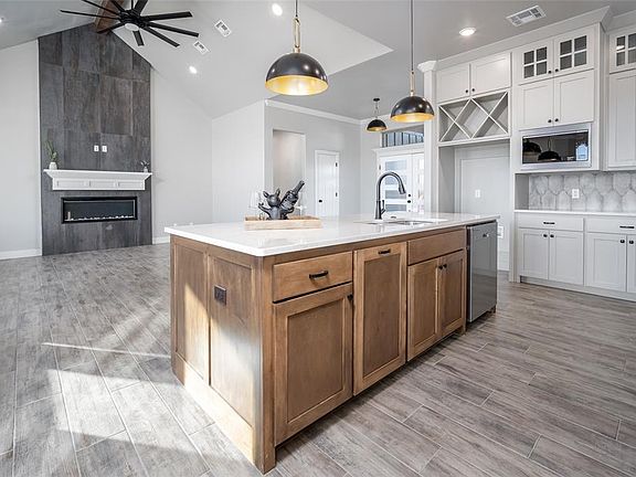 Price reduced for end of year sale! Come see this lovely 3 bedroom plus office home with 2 full baths and guest powder bath. From the moment you step through the double door entry, you will find the home open and welcoming with lots of natural light. The main living area floors are covered with wood look tile and have 10 foot ceilings with a cathedral ceiling in the living room. The kitchen cabinets go all the way to the ceiling with backlit uppers and undercabinet lights to accent the 3cm quartz countertops, which you will find throughout the home. The spacious center island comes with a built in trash drawer. Behind the elegant rain glass of the pantry door, you will find a bit of butler's pantry with backsplash matching the kitchen with some extra deep shelves and power. The carefully crafted color pallet includes stained maple accent pieces such as the kitchen island, hood vent, and mud bench. The 10 foot ceilings extend into the master suite, where you will find spa like luxury bath and shower. The walk-in closest includes off season hanging, full length mirror, and a generous shoe rack; and the best part is it's directly connected to the spacious laundry room. The home sits on a three quarter acre corner lot, and shop are allowed. The garage is an oversized 3 stall garage (25 feet deep) with 840 square foot of space. This home is all electric (no propane) and panel is pre wired for backup generator. County water, aerobic septic, and OG&E electric. Fiber in the neighborhood. Located off I-40 and Banner Rd, home is 3 minutes from restaurants and shopping at I-40 and Garth Brooks Blvd in Yukon. Move in ready. Banner schools. Owner/Agent.