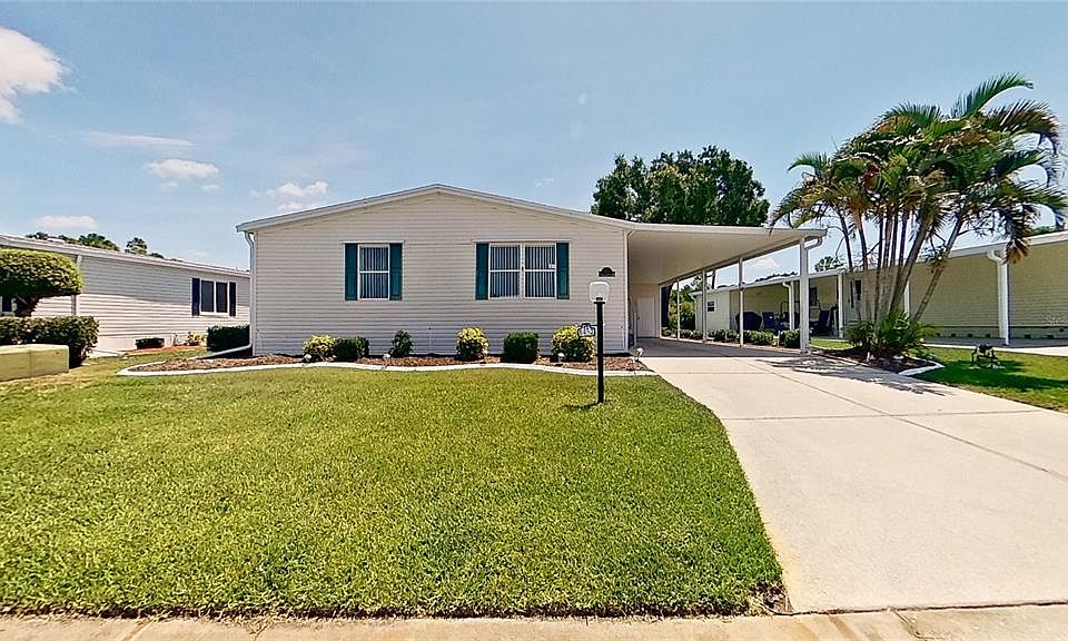 Welcome to Imperial Lakes Estates! This is an upscale gated 55+ community where you own your home and your lot. The community is centered around a 65 Acre Lake where you can kayak, canoe or use an electric powered motorboat, and you can enjoy resort style amenities including 2 heated pools with a spa, water aerobics classes, tennis, pickle ball, shuffleboard, bocci ball and a beautiful club house with a dance floor, library, kitchen, billiards, bingo and darts. Imperial Lakes Estates is golf cart friendly with cart access to Moccasin Wallow Golf Course. This is one of the larger homes in the community at over 1500sqft with 2 bedrooms, 2 bathrooms, a den, office and a 2-car tandem carport. New Roof (2022) and New AC (2020). There is a large living room with gorgeous, wide-plank laminate flooring when you first enter that leads into an enormous eat-in kitchen that boasts ceramic tile flooring, crown molding, and tons of cabinet and counter space. All appliances are included. The washer and dryer are also located in the kitchen for easy access and are tucked away in their own closet complete with shelving for storage. The den is off the kitchen towards the rear of the home and has French doors, matching wide-plank laminate flooring and an entire wall of windows that give you an amazing view of the conservation area behind your home (No Backyard Neighbors). The office has double entrances and can be accessed from the den or master bedroom. The master bedroom is gigantic and has new carpets, a walk-in closet and a spacious ensuite bath with new laminate flooring, double sinks and a large walk-in shower. There is also a 2nd full bathroom, and the ample sized 2nd bedroom has new carpet as well. You can relax on your screened in rear lanai and take in the private wooded view, and you can also relax that your tools will be safe and secure with a lockable workshop/storage area. You'll have tons of shopping that is easily accessible at Ellenton Premium Outlets, and you're only a short drive from all of the cultural experiences that Tampa, Sarasota and St. Pete have to offer including the Straz Center for Performing Arts, the Dali Museum and the Bucs, Lightning and Rays. You are also less than an hour from many of Florida's award-winning beaches. Low HOA and no CDD. Call for your tour today!