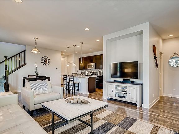 Look no further! This beautiful luxury townhome is centrally located in the highly desirable Arista neighborhood! It offers a light, bright & open floor plan w/ high ceilings, hardwood flooring throughout main floor living, dining, kitchen & powder room. The kitchen boasts Corian countertops, stainless steel appliances & a generous pantry designed to make cooking a joy. Upstairs you will find a loft flex space, laundry, master bedroom, and 2 good size rooms. There are no shared walls on these units! Head out your front door and walk to the nearby restaurants or shops in downtown Broomfield. Easy access to highway 36 for a quick commute to Boulder or Denver.