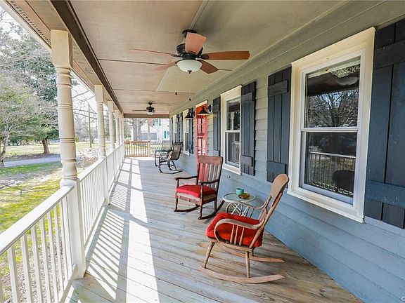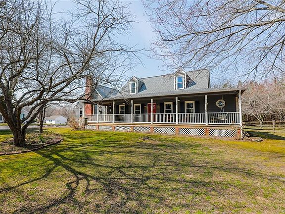 Welcome to a country paradise! This fantastic Cape Cod offers a full wraparound country front porch, first floor owner's suite, huge detached garage, and is nestled on a 1+ acre lot in an idyllic country setting. The living rm is spacious and leads to the bright chef's kitchen featuring granite countertops, custom cabinets, a large breakfast area surrounded by windows, and a huge island for all your kitchen prep and serving needs. The family rm is 25'x23' with a cathedral ceiling and wooden beams, stunning floor to ceiling brick fireplace with gas logs and brand new carpeting! Tucked away also on the first floor is a great master suite With spa bath and huge walk-in closet! Upstairs you will find 2 additional extra large bedrooms with heart pine floors and a full bath! The oversized 2 1/2 car detached garage is a dream workshop with an electric subpanel, water/septic connection, and unfinished space on the second level just waiting to be turned into an incredible Man Cave. Additional features include HIGH SPEED INTERNET, a new roof and new well pump in 2018, fresh paint throughout much of the home, newly refinished hardwood floors and granite counters in the bathrooms! Don't wait!