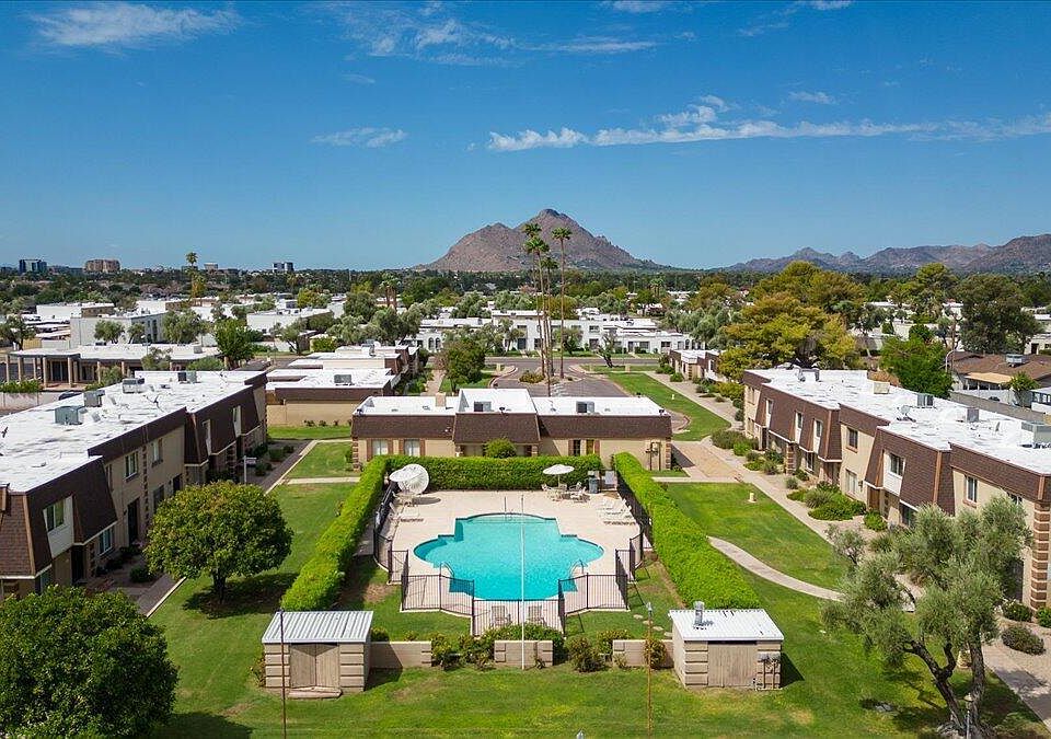 Need a lower interest rate? 2-1 Buydown Option is possible!! Nestled in the heart of Scottsdale, this townhouse presents an array of features. Positioned as an end unit, it boasts the advantage of having just one adjoining wall, offering you increased privacy. The lower level includes a charming living room, dining room, laundry, a convenient half bath, & a bright & expansive kitchen adorned w/ granite tops, island w/ storage & bar area complete w/ beverage fridge for your enjoyment. Head upstairs to discover 2 generously sized en-suite bedrooms, ensuring ample comfort & convenience. The location is truly unbeatable w/ its close proximity to popular destinations like Fashion Square, Chaparral Park, Old Town & Talking Stick. Whether you're embarking on a homeownership journey or seeking a future investment opportunity, this is the one for you!