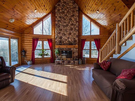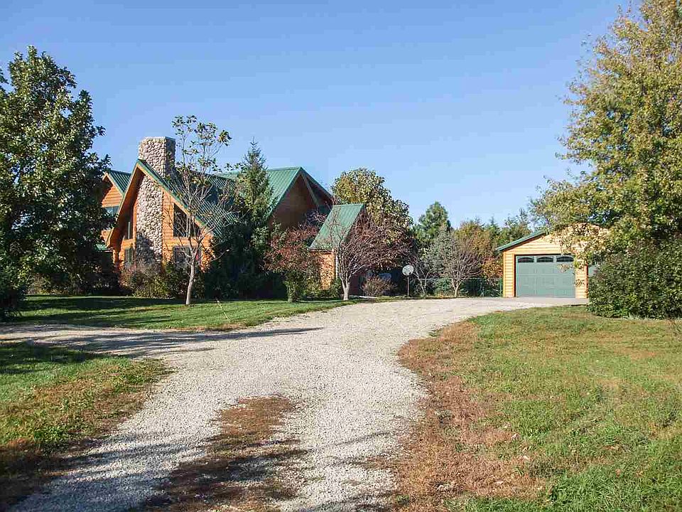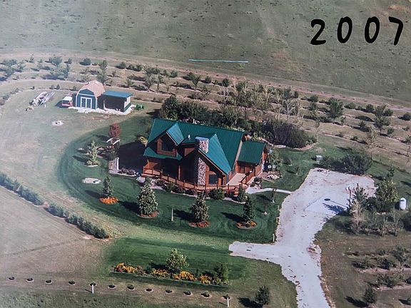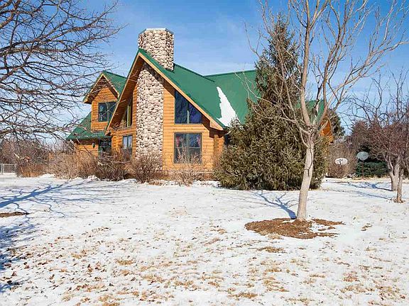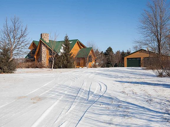 This log home sits on 20 acres of prairie grass, beautiful plants & several fruit trees. The open floor plan allows you to enjoy the atmosphere of the surrounding country side inside with the warmth of the gas fireplace. The kitchen has custom made hickory cabinets with granite countertops. The main floor boasts a spacious master suite that has access to the wrap around deck. The master bath is complete with double vanity, glass front shower and large tub. The second floor features 2 large bdrms w/ plenty of closet & storage space and 2 full bathrooms. The full walkout basement if currently a large workout area but can quickly become a spacious family room and entertainment area. The 4th bedroom and 4th bath are located here as well. Designed for efficiency with dual efficient furnace & AC for the main floor & basement w/ a separate efficient furnace & AC for the 2nd. The property has 2 storage buildings, and an oversized 2 car detached garage. See info sheet for additional details.