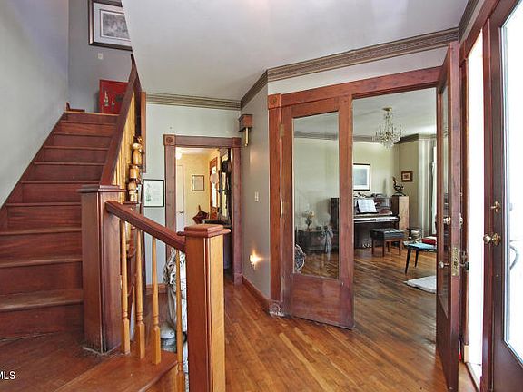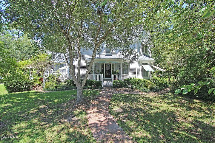 Replica Victorian home nestled among many trees with beautiful architectural details and charactor. Oak floors through out this 5 bedroom, 3 1/2 bath. 1 bed/1/bath on the 1st floor. On the 2nd floor3 bed/2 bath, including master suite. 3rd floor is a retreat in the sky with pine bead board walls. Large open floor planin the kitchen/dining/sitting area with a walk in pantry. Soapstone kitchen countertops, deep sink, and large kitchen island. Wood burnibg cast iron fireplace w/ soapstone top. Butler's pantry and snack bar arbetween kitchen and family room. Family room has a woodburning fireplace. Separate large livingroom for quite, privacy, adult living space with another fireplace with antiqu mantle, double glass doors circa 1900. 3 porches/1 screened. 3 ponds,gazebo and small rive