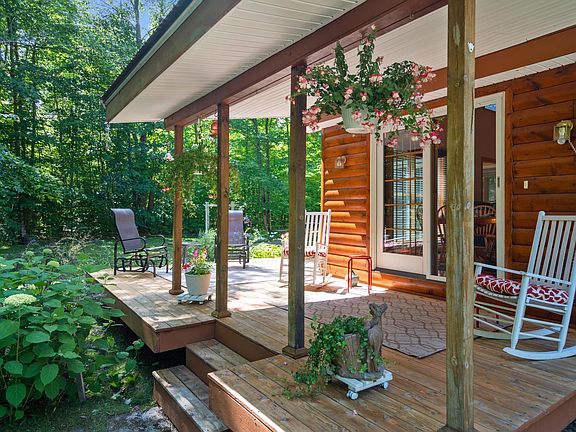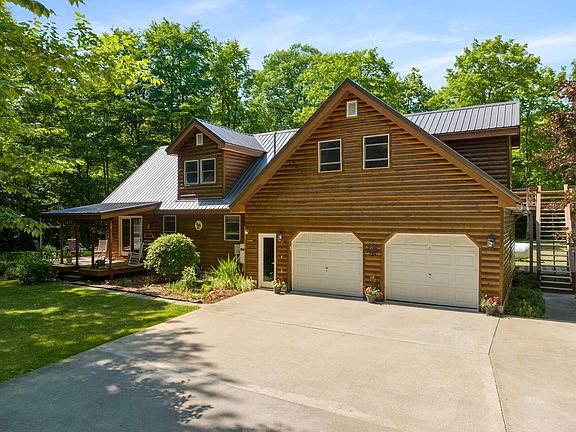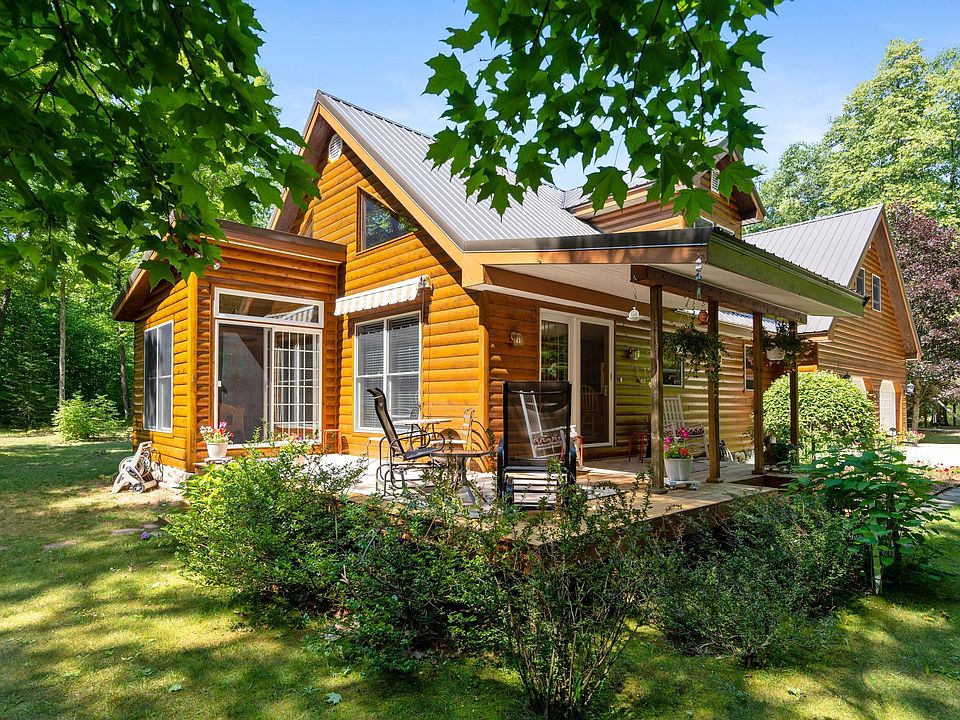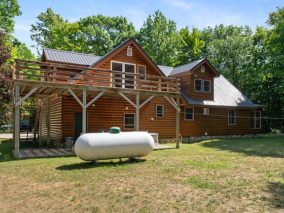 HIDDEN GEM located in the heart of Northern Michigan, just minutes from Lakes Michigan & Huron and across the road from Paradise Lake! This very private wooded setting is the perfect location for the outdoorsman! The spacious log sided home sets on 18.48 acres with state land adjoining on two sides. Enjoy watching all of the wildlife stroll by. There is a large pond located at the back of the property as well. This 3 bedroom home with space for an office is perfect for your UP NORTH retreat! The cathedral ceiling in the living room gives it a very open feel. Sit in the sun room and enjoy views of the flower gardens around the large yard. The home has a heated attached garage with a workshop. In addition the pole barn is great to store all your toys in.There is also guest cabin out back! The large loft space upstairs used as a family room could easily be converted into a third bedroom.
