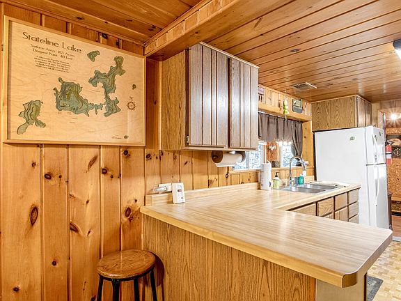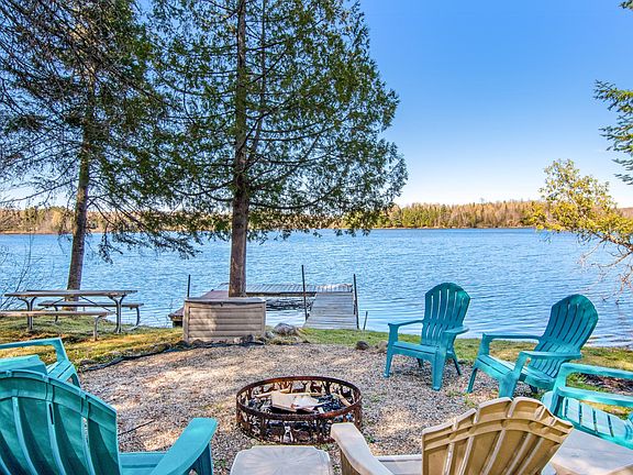 If you're looking for a little slice of heaven in far northern Wisconsin, you've found it. Enjoy an evening campfire at the shore and take in the exceptional views of Stateline Lake (half the lake is in WI and half in the UP). This 3BR seasonal cabin sits on 1.9 acres and offers nice amenities such as central air and a large kitchen with 2 dining areas. The inside is comfortable, roomy and has been well maintained. The exterior offers a deck with lake views, ample parking and space for yard games. The lot is divided by the private road and there are 2 storage sheds on the opposite side of the road. Property is being sold turn key so all you have to do is pack your suitcase. See exclusion list for items not included. Vacasa manages short term rentals in the summer (property is zoned Recreational). Updates: Water heater (5 yrs), roof (12 yrs), septic (7 yrs). There is an adjacent vacant lot (22-1280) also for sale for $149,900.