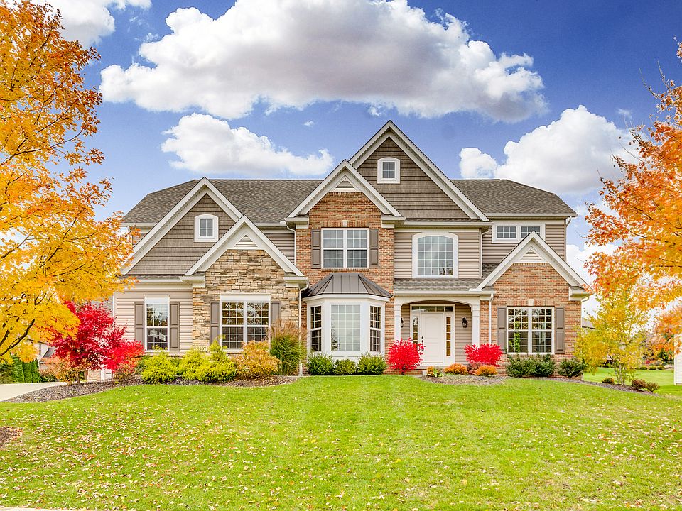 Beautiful colonial in St James Place has 5 bedrooms, 4 baths, 3 car garage. 1st floor junior suite and 2nd floor master suite with spacious closets and full baths. The impressive 2 story foyer entry is elegant with hard wood flooring, yet maintains its considerable warmth and charm. As is quickly becoming the new standard in today’s new construction market, this incredible home features a keeping room near the kitchen and dining areas. Most of the first floor has stunning hard wood flooring and extensive wood trim. The large beautiful kitchen has a massive island, open concept feel and counter seating. The gas fireplace is floor to ceiling stone with wood mantel. The second-floor master suite features dual sinks, extremely large fully tiled walk in shower, 14 x 7 walk in closet, luxurious soaking tub and private water closet. Each bedroom has either a walk in or double closet, plus direct access to a full bath, including one Jack and Jill bath. The 2nd floor laundry adds convenience and functionality to this wonderful home. The beautiful area behind the home has a cement patio and beautiful rock retaining wall. This home is a show stopper with lots of details.