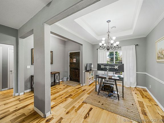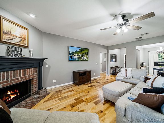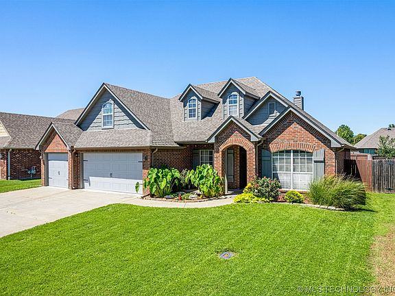 This beautiful 3 bed, 2.5 bath, 3 car garage home is located in one of the most desirable neighborhoods in Verdigris! Located on a quiet street and within walking distance to both of the Vintage ponds, the location is ideal. Upgrades include new roof in 2019, new exterior paint in 2019, new beautiful Hickory wood floors installed in 2021, new dishwasher in 2020, and new insulated garage doors in 2021. The large backyard comes fully fenced, with a covered back porch and includes a fire pit. The primary suite features a spacious layout with a walk-in closet connected to laundry room, and an en-suite bathroom with separate sinks, tub and shower. The kitchen includes a large walk-in pantry, island, and stainless steel appliances. Each guest bedroom has a walk-in closet with tons of storage! Seller is offering a 1 year home warranty for the new owners and a $1000 allowance for new carpet. Conveniently located close to Hwy 66, Hwy 266, and the Will Rogers Turnpike. Don't miss out on this fantastic home!
