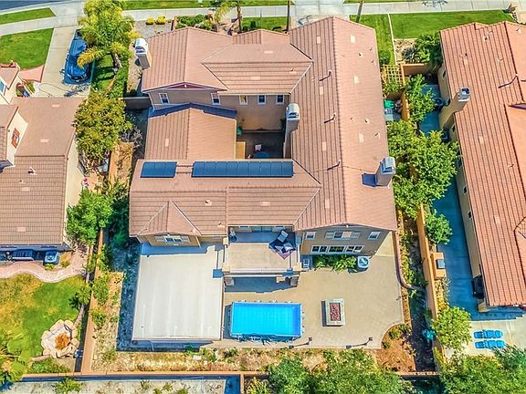 Gorgeous house with too many upgrades at one of the most prestigious gated communities in the city of Corona. The first floor Starting from a separate guest suite with its own full bath, spacious great family room, kitchen with oversized island to entertain, enjoy friends, kitchen with stainless steel appliances, 6 gas burners stove, double conventional ovens. Pool table room, wine cellar room, and bar. Courtyard is the signature centerpiece with its natural wood fireplace and pebble flooring, relax anytime of the year, 2 sets of French doors open to the dining and pool table rooms. Tile and wood flooring throughout the first floor. Backyard was recently completely redesigned with a beautiful outdoor kitchen and T.V. sitting area complete entertainers delight. This recent $75,000 upgrade features include custom pavers covering the whole backyard, features a waterproof patio cover with a new fire pit to relax a night cap. The second floor has master suite with a huge custom-built open concept/walk in closet, also features French doors open to a relaxing balcony. master bathroom features a jet jacuzzi tub, two separate sinks, natural stone shower with double shower heads. 3 other large bedrooms with California closets. huge loft can be a study, a play area, or whatever your imagination creates. 2 staircases, by the entry and rear one leads upstairs from the family room, cooling whole house fan along with paid off solar system. this house will not last long on the market.
