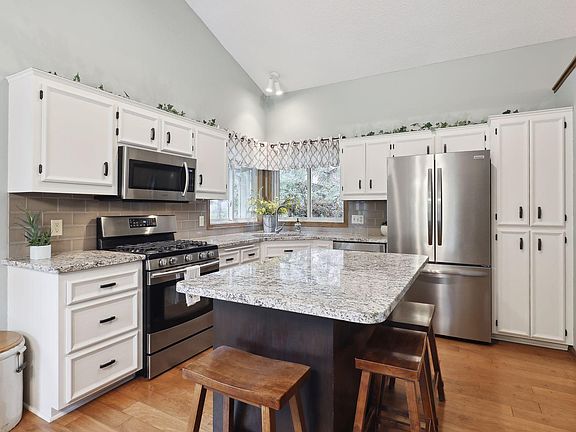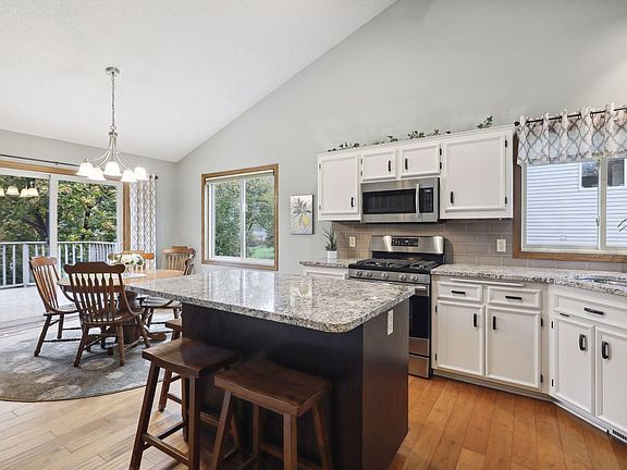 Welcome to this sunny & completely updated walkout home nestled amongst mature trees. Tastefully improved and well cared for, its features include an updated white kitchen, new stainless appliances, granite counters, corner window, updated baths, and new high-efficiency HVAC to help with energy costs. The open vaulted ceiling, open floor plan, and large windows/patio doors fill every corner of this home with natural light. Mindfully landscaped (seller was a professional landscaper in the past) so you are surrounded by the beauty of nature in a quiet, private setting. The neighborhood is special with a variety of mature trees, tons of parks, walking trails, nearby schools, and Steve Michaud park. Enjoy the convenient retail in Apple Valley, quaint downtown Lakeville, and close proximity to highways. Turn-key & ready for immediate move-in!