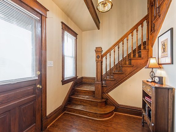 Built in 1905, this warm and inviting two-story home boasts nearly all its original intricate millwork. A beautiful stairway, original solid pocket doors, three bedrooms, one and one half bath, formal dining room, newer roof, three stall garage and more.