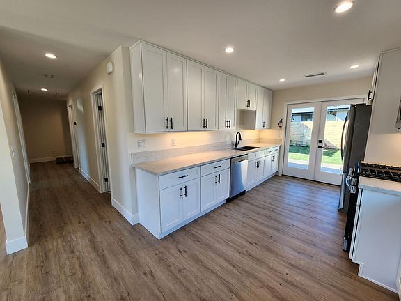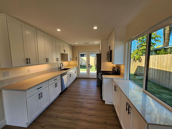 3br/2ba home has been beautifully & completely remodeled. Vinyl plank flooring throughout with all new paint, windows, blinds, ceiling fans, baseboards, doors and hardware. Kitchen is stunning with white shaker cabinets, new SS appliances and endless quartz counters. Lots of cabinet storage! A French door leads out to the nice sized, fenced in backyard patio with new sod and landscaping. The Primary bedroom is large with sliders out to the back yard and its own spa like bathroom with double sinks in the brand new vanity, a walk in closet, and a beautiful new walk in shower. There are 2 other bedrooms and a gorgeous guest bath as well. This unit comes with full sized stacked front loader washer/dryer and storage nearby. 1 car garage with 2 tandem spaces in the driveway. Tenants will pay their portion of all utilities, but each unit will have their own separate meter for electric. Located off of Leucadia Blvd, just a short distance from the 5 freeway and only about 1 mile from the beach. Close to shopping and dining. This is more than just a rental, it is a gorgeous place to call home. Unit will be ready to rent the 1st week of February. This unit has a JR ADU attached to the backside with its own separate entrance and yard & another detached ADU at the very back of the large lot. Minimum 1 yr lease. No smoking. Owner pays Gardener & 10% of water bill. Please call Broker for prescreening and to schedule a viewing.