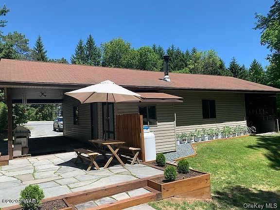 Custom ranch meets country comforts! Satisfy those country desires with this tidy custom 2BR/1Bath ranch,cozy enough to relax in and offering many amenities for country living. Sharp design with the vaulted wood ceiling in the opened concept living/dining room off the kitchen. Relax by the fireplace or get warmed by the pellet stove. The home offers many updated comforts in the kitchen and bathroom. Raised flower beds surround the home and flagstone deck for R&R and BBQ. Property features a heated 3 bay garage with two attached carports offering plenty of storage for boat, RV or other country toys. One side fenced in for dog pen and wood shed off the side. Fenced in area for chickens and ducks producing fresh daily eggs! Start or end your day in the spa room for hot tub therapeutic soak! Great location just minutes to Lake Wallenpaupack, shopping, and Promise Land State Park. Call today for appt.