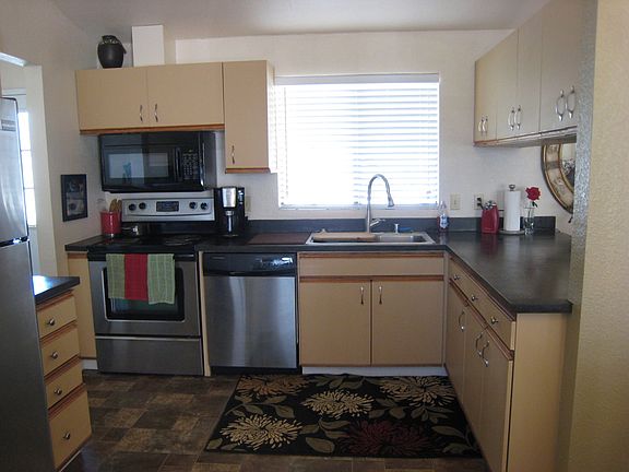 PRICE REDUCTION! Warm and inviting! This home was remodeled recently with stainless steel appliances, textured walls painted with designer colors, 6 panel interior doors, new sinks, light fixtures, & vanities. It is located on a fabulous greenbelt lot with a private feel & includes a small fenced easy care back yard, and new front deck. Located in Los Robles, an established, well maintained 55 y park.