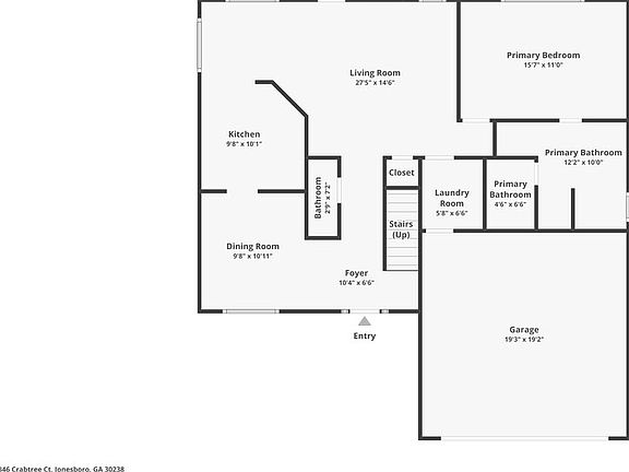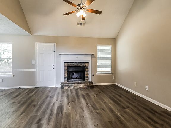 Please note, our homes are available on a first-come, first-serve basis and are not reserved until the lease is signed by all applicants and security deposits are collected. This home features Progress Smart Home - Progress Residential's smart home app, which allows you to control the home securely from any of your devices. Want to tour on your own? Click the "Self Tour" button on this home's RentProgress. Featuring a charming exterior and a renovated interior with three bedrooms and two-and-a-half bathrooms, this Jonesboro, GA rental home is a must-see. A pretty brick fireplace creates a cozy ambiance in the living room, which has a vaulted ceiling with a fan. Follow the back door outside to find a spacious concrete patio and a fenced-in yard. A granite serving bar connects the living room with the kitchen, which has a convenient double-basin sink and a full set of stainless steel appliances. You'll love the elegant all-white cabinetry. A big row of windows floods the primary suite with ample natural light. Along with a large walk-in closet, the suite includes an adjoining bathroom.