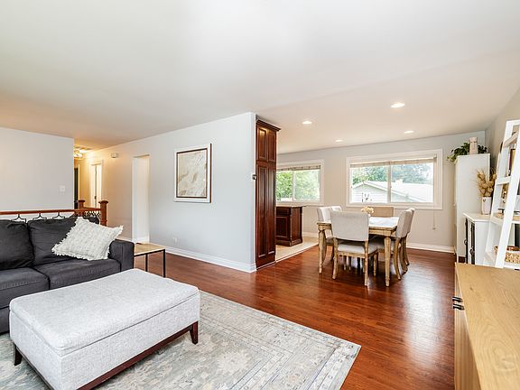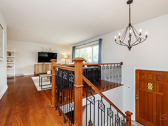 Welcome to 846 E Baldwin. This meticulously maintained 4-bedroom raised ranch is nestled on a beautiful tree-lined street in Winston Park. The move-in-ready home features hardwood floors throughout the main level, with abundant natural light illuminating the cozy living space, dining room, and three bedrooms. The kitchen boasts ample storage, an island, stainless steel appliances, a stylish backsplash, granite countertops, 42" cabinets, a new dishwasher (2022), and a new microwave (2024). The primary bedroom includes two closets featuring floor to ceiling doors with custom shelving and a shared bathroom updated in 2020 with modern shower tile and a double vanity. The lower level offers an additional living room, an updated full bathroom (2019), and a fourth bedroom combined with a laundry space. The heated, 2.5-car garage is extra deep for additional storage. Enjoy the fenced-in backyard oasis with a large raised deck and plenty of space for your ideas. Recent updates include fresh paint throughout most of the home (2024), a new roof with a transferable warranty (2022), a new furnace (2022), vinyl plank floors on the landing and lower level (2019), and many new windows (2019). Located just 1/2 mile from Winston Campus schools and minutes to grocery stores, the Metra train, restaurants, and more.