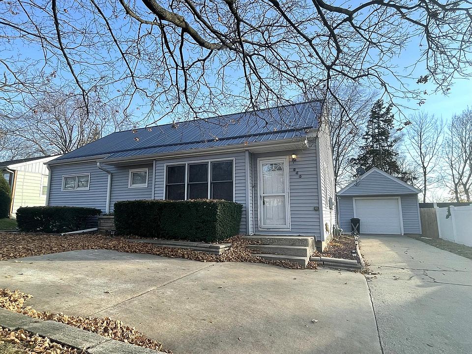 Cute 2-3 bedroom in a handy Dixon location with low maintenance exterior. Nice sized living room with laminate flooring. Arched doorway to the kitchen. White cabinets with laminate flooring. Stove, refrigerator and microwave included. Bonus room with door to the backyard and patio, could be 3rd bedroom, family room, office, sun room. Six panel doors throughout. Good deep basement. Washer, dryer and freezer included. Furnace (2020). Central air (2020). Water Heater (2016). Steel roof. Concrete driveway. 1 car detached garage. Nice backyard and patio area. Estate - being sold AS IS.