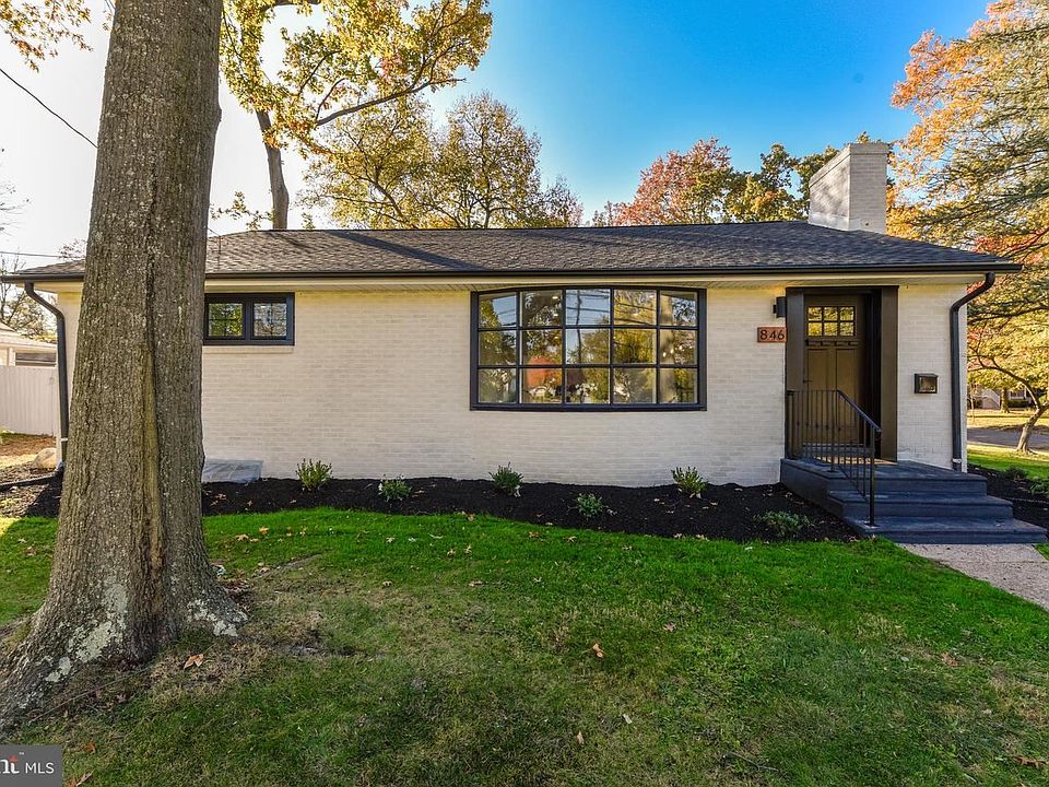Incredible opportunity to purchase a fully gutted and remodeled rancher in historic Haddonfield. The home layout has been reimagined and the property features new plumbing, electrical, new roof and interior and features an expansive open-concept floorplan. Entering the home, you'll find the open concept living area with a beautifully refinished wood burning fireplace. The new kitchen features new white shaker cabinets, quartz countertops and all new stainless steel appliances. Two generously sized bedrooms share a jack and jill bathroom and the master suite, with stunning natural light and french doors, features its own gas fireplace and full bathroom. The master bathroom features a large double vanity, lighted vanity mirrors, a sahara carrara marble shower with a Schluter waterproofing system and a porcelain tile floor. The french doors will lead you to a large outside patio. The main level also features an additional powder room and laundry room with sink, storage and quartz countertops. The rear of the home contains a large two car garage with a professionally refinished floor, recessed lighting and additional access to the backyard and rear patio. The fully finished basement of the home will be perfect for entertaining. It features recessed lighting, finished and unfinished storage areas, a brand new interior french drain and access to the exterior of the home. The exterior has been completed with a brand new stamped concrete patio and new driveway. Truly a must see.