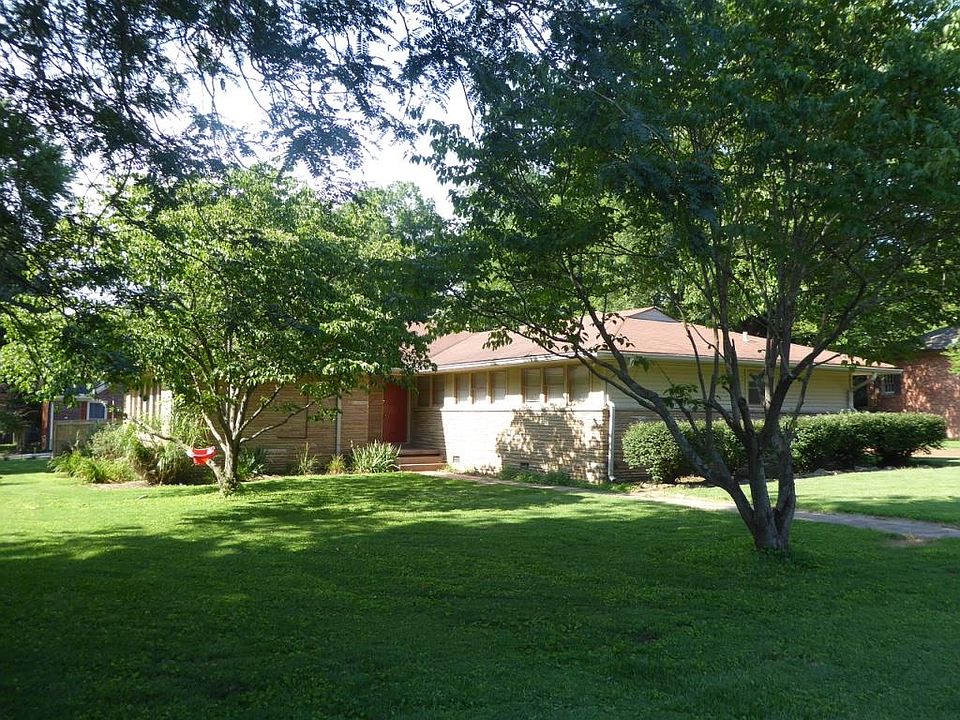 Cool orchard stone 50's modern rambling ranch in lovely neighborhood features 4 bedrooms, huge great room, fireplace, formal dining, huge kitchen den or dining combination. Wonderful level lot with sunny garden spot, covered porch and 2 car carport.