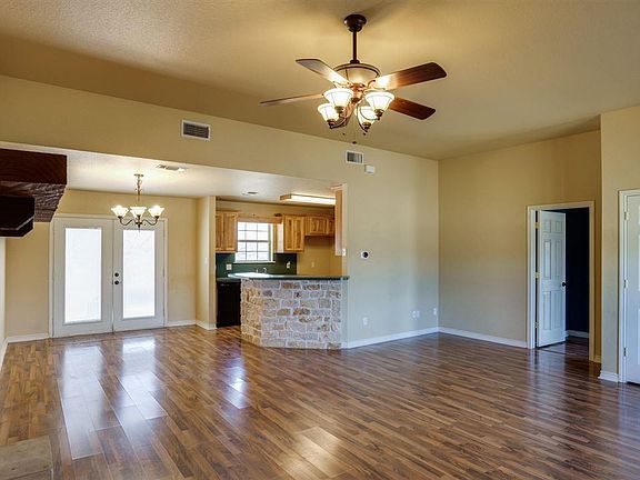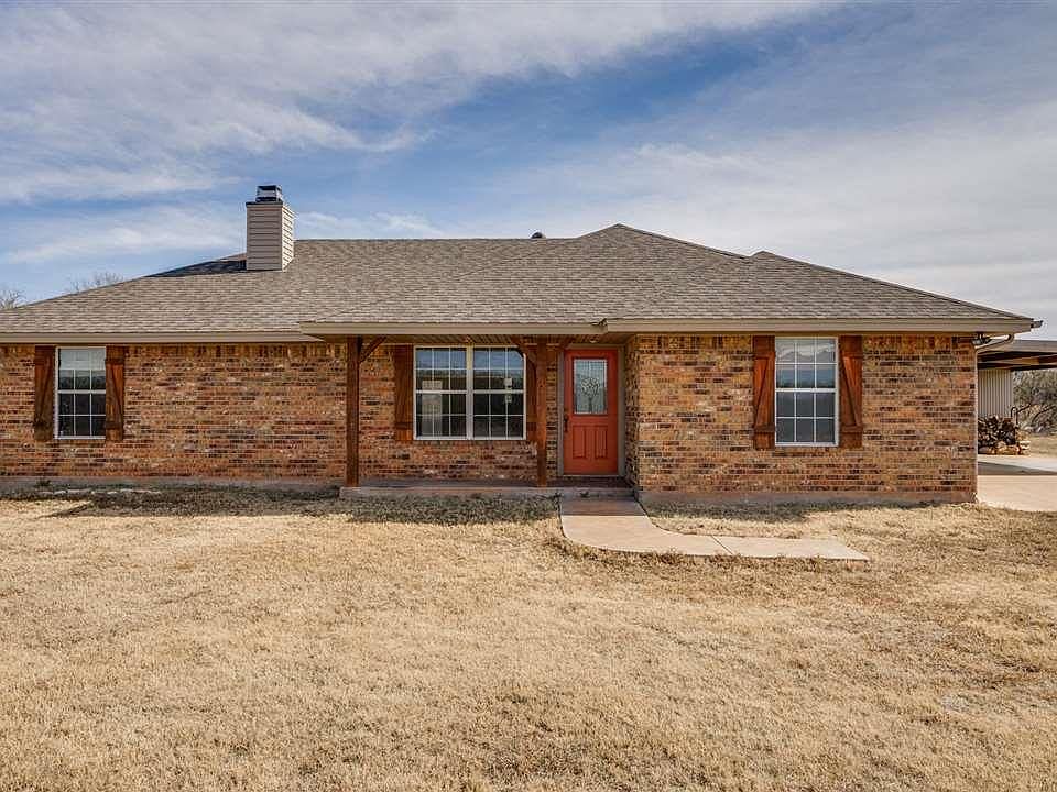 Nice secluded home in Holliday ISD sitting on 13 acres. The house was built in 2004, contains 1,454/sf, 3 bedrooms, 2 baths, large living area open to the kitchen, breakfast area, isolated master bedroom, walk in master closet that is also a safe-room and a separate utility room. There is a 2 car carport and 2 storage buildings. The land is to the south of the house and is primarily wooded with mesquite. The house is off little lease road and offers great privacy.