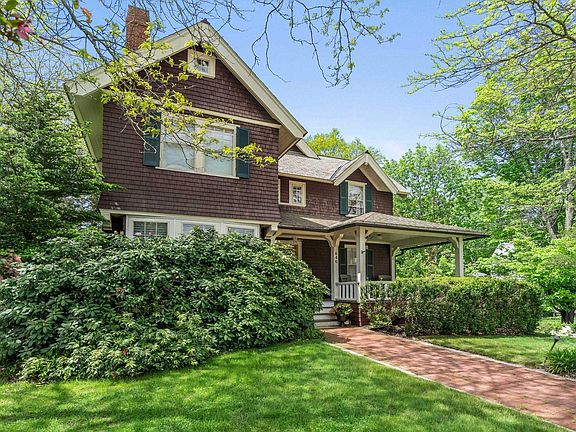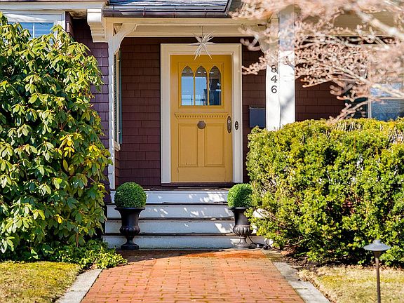 Welcome to 846 Middle Street, an iconic 2966 sq ft shingle-style property minutes to downtown Portsmouth! Built in 1902 and designed by Robert Coit, H.H. Richardson Architects, this classic property sets an impressive standard with modern updates. Step onto the covered piazza with a new architectural shingle roof and enter into the original front door entry. The fireplaced living room features a built-in window seat, pocket doors, ornate woodwork and hardwood flooring. Well-appointed first floor den includes an original stained-glass window. Dine in grandeur in the elegant formal dining room with chair rail molding and an original built-in leaded glass China cabinet. The updated spacious kitchen is a classic blend of today's living, while preserving the integrity of the home. Amenities include granite, slate and wood countertops, original butler's pantry, built-in cabinetry, breakfast bar and back staircase. The fireplaced primary bedroom has a light and airy feel. Two additional large guest bedrooms and two baths with radiant heated floors and separate laundry complete the second floor. Finished third floor serves as another guest or bonus room. Enjoy the private landscaped grounds from your sunroom or expansive maintenance free deck. Two car detached garage, central air, irrigation, newer sewer replacement, night lighting and more. Take a short sidewalk stroll downtown and experience Portsmouth's historic seaport and cultural arts scene. A timeless property to call home!