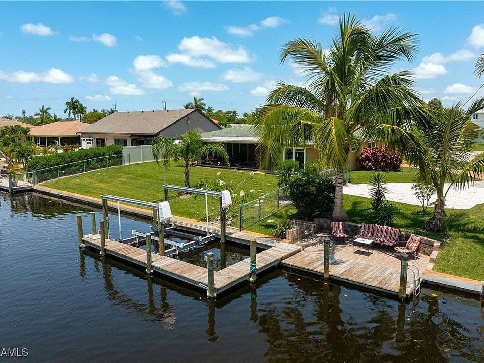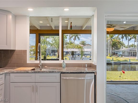 OPTION FOR LEASE PURCHASE. This is what waterfront dreams are made of! Located in the coveted Yacht Club area of Cape Coral, close to the river with DIRECT GULF ACCESS and SOUTHERN EXPOSURE on an oversized lot (and at the end of a cul-de-sac) street. With a GAS cooking and newly installed impact windows and doors, this quickly checks off boxes so many homes cannot! Inside, you will find many upgrades, including a new kitchen, new bathrooms, and the same flooring throughout. This location is prime for quick access for the avid boaters, just around the corner from the re-envisioned Cape Coral Yacht Club, Cape Coral's only beach! The backyard oasis is ideal for entertaining and has plenty of room for a pool. 105 of seawall and waterfront views, close to the river and a cozy dock! CHECK OUT THE POOL RENDERINGS!